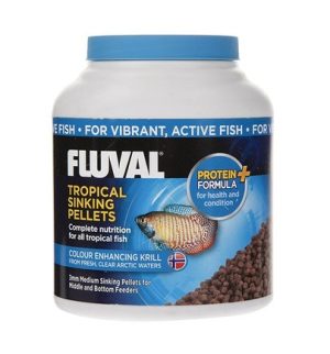 غذای fluval tropical sinking pellets، یک غذای منحصربهفرد از کمپانی فلوال ساخت چک است که میتوان آن را بهعنوان غذای روزانه برای انواع ماهیهای گیاهخوار و همهچیزخوار استفاده کرد. این غذا حاوی مواد معدنی، امگا 3، کریل و روغن زیتون است که به رشد و رنگپذیری بهتر ماهیها کمک میکند. این غذا هضم آسانی دارد و برای ماهیهای متوسط تا درشت مناسب است. سایز دانههای این غذا 3 میلیمتر است. بهتر است ماهیها را بیش از حد تغذیه نکنید و روزانه دو تا سه بار، به اندازهای به آنها غذا دهید که در عرض پنج دقیقه غذا را تمام کنند.