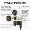 رگلاتور co2 موفان دارای دو گیج فشار است که فشار داخل و خارج کپسول را نشان می دهد. گیج فشار داخل کپسول به شما کمک می کند تا از میزان فشار باقی مانده در کپسول دی اکسید کربن خود آگاه باشید. گیج فشار خارج کپسول نیز به شما کمک می کند تا جریان دی اکسید کربن را تنظیم کنید.